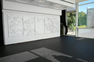 This is the first floor including an installation of “One Tree Forest” and a wall installation of the dandelion drawings. This installation is intended to grow considerably, it is my first opportunity to show this.