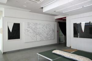 This is the first floor including an installation of “One Tree Forest” and a wall installation of the dandelion drawings. This installation is intended to grow considerably, it is my first opportunity to show this.