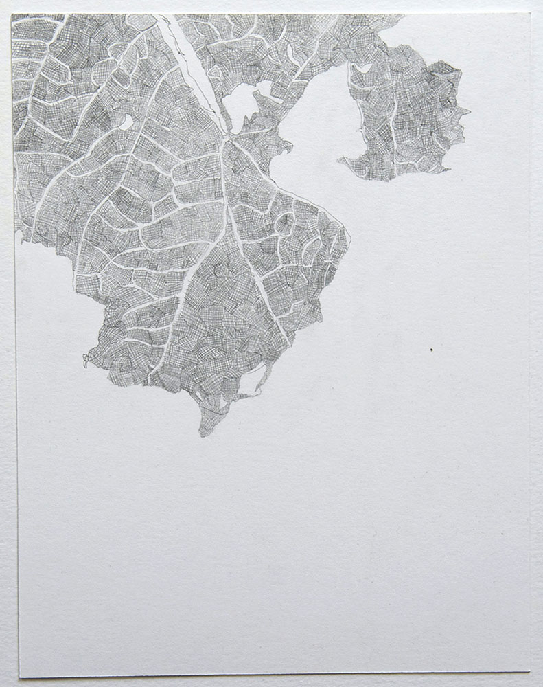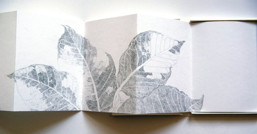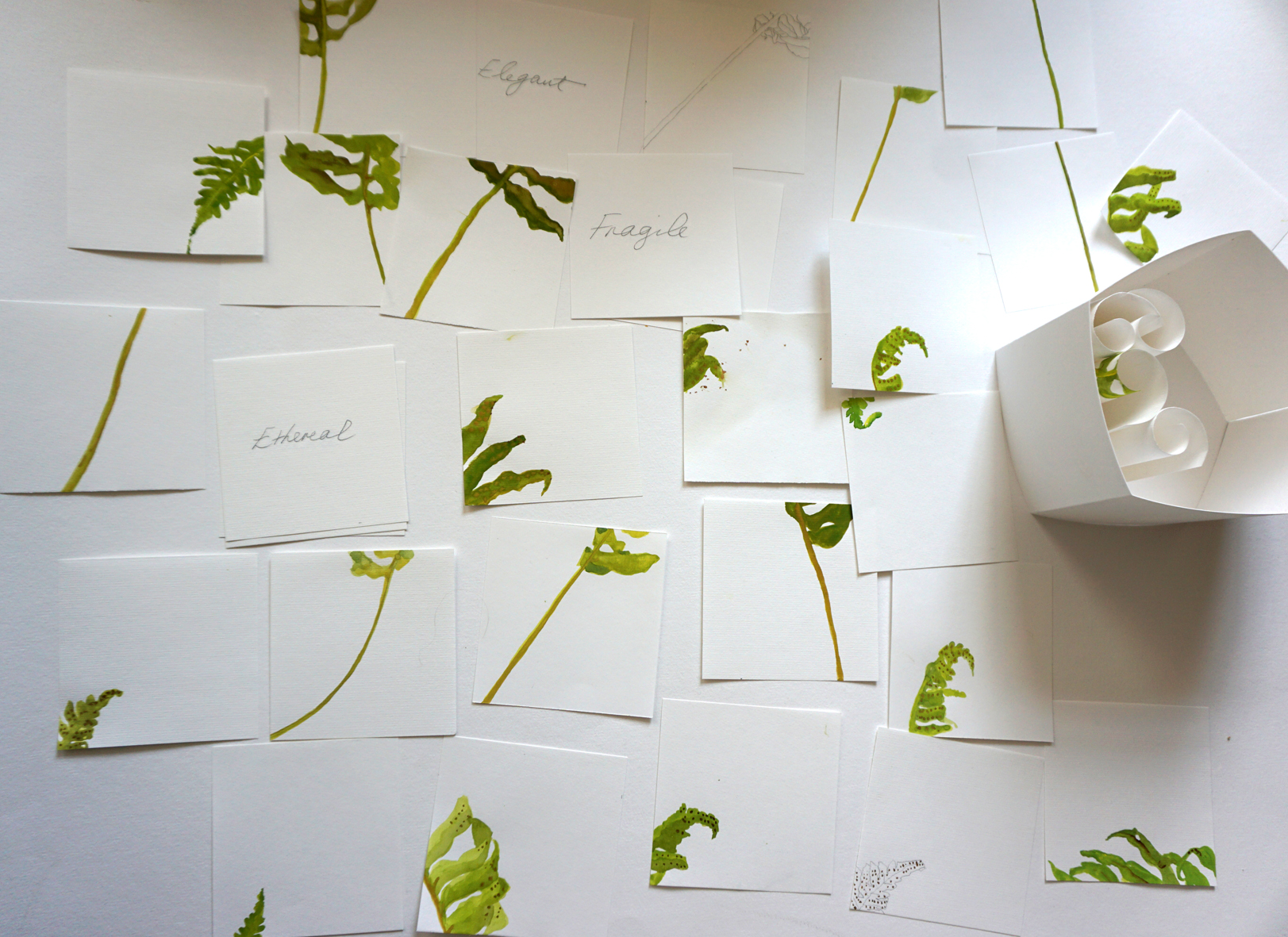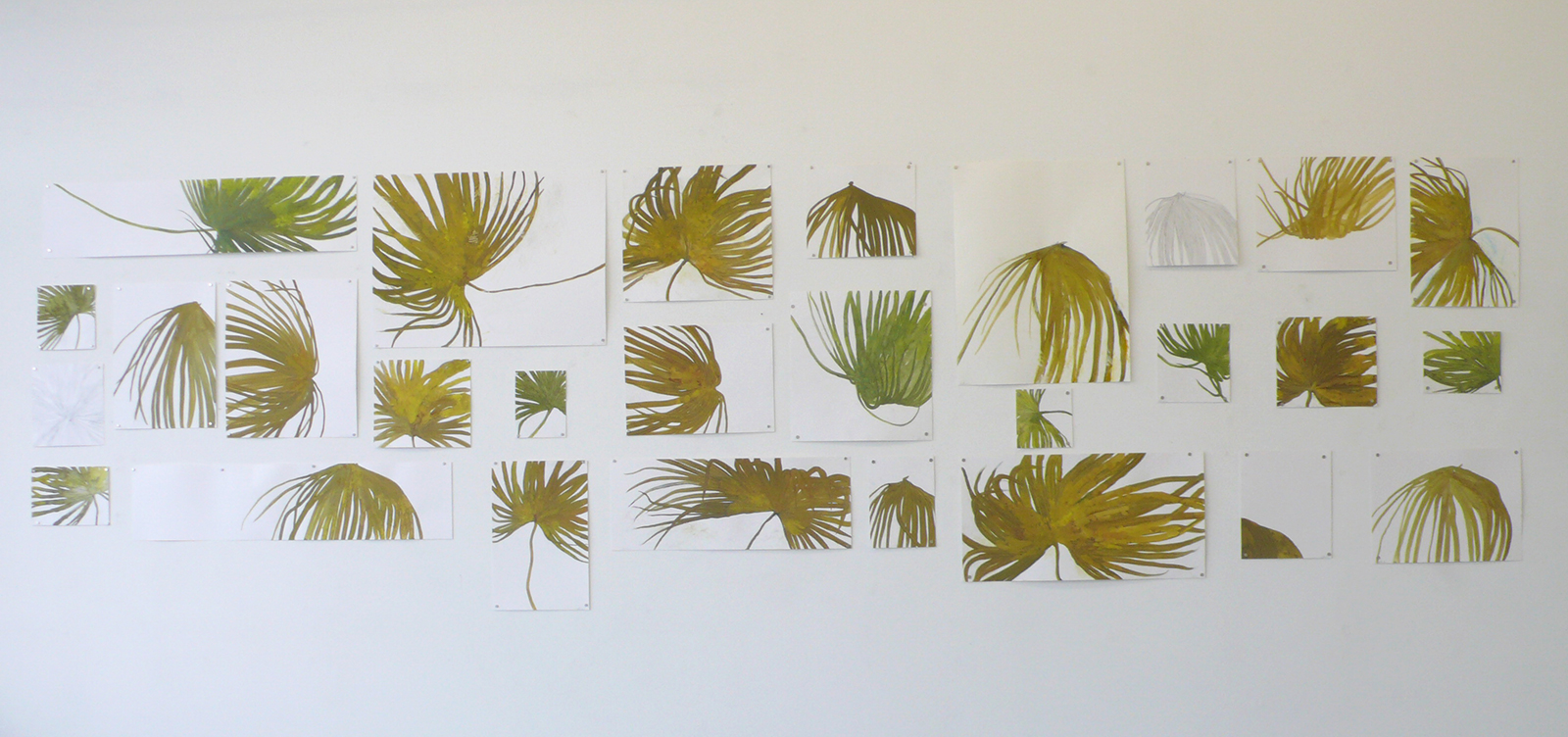 Shape, patterning and structure, particularly the internal structure of leaves and the patterning and repetition of pattern and form within plants. The inspiration for these series originate in both the Hortus Botanicus Amsterdam and Leiden, this is a small selection. Coccothrinax Argentea leaf follows the changing colour and shape of a single dying leaf over a period of three months. The year long Giant Rhubarb series studies the intense internal veining and structure of the rhubarb plant. The Rudbeckia Twig follows the shape and space defining forms produced by a single twig.